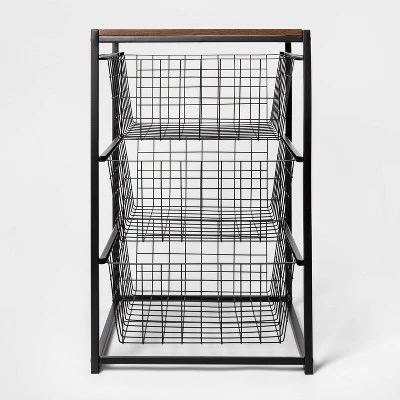 Organize your clothes and shoes with ease with this 3-Drawer Organizer from Brightroom™. This metal closet organizer brings practical storage to your space. It features a vertical design with three spacious slide-out drawers to provide ample space for universal storage, and the wood top creates attractive space for display. The wire frame construction provides ventilation and the color selections can easily coordinate with any décor aesthetic.
