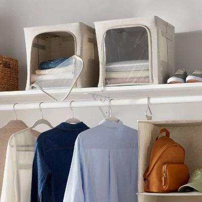 This Set of 2 Zipper Fabric Storage Cubes from Brightroom™ is perfect for keeping your closets organized and clutter-free. The gray storage cubes offer a place for storing clothing and other necessities when you run out of drawer space. The attached handles make it easy to move the organizers on and off closet shelves and the zippered front and top give you easy access, while the clear window lets you easily see the contents stored inside. Best of all, they fold flat and can be stacked when not in use.